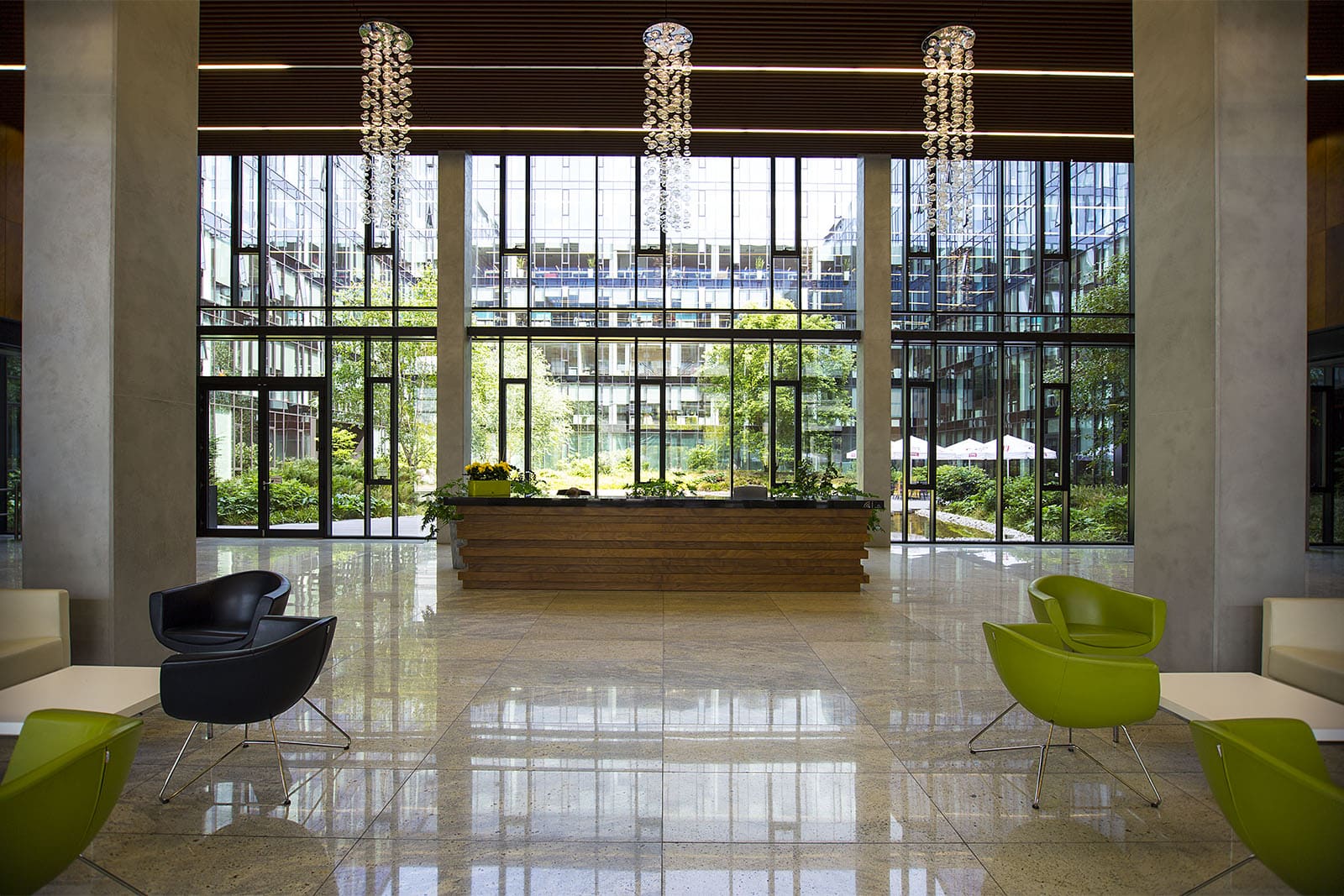 Konstruktorska Business Center is a trophy asset featuring the largest office floor plates in Central and Eastern Europe. This prestigious complex in Warsaw serves as headquarters to major multinational corporations including Procter & Gamble, Emerson, Carrier, OTIS, PZU, Lionbridge, and Kanał Sportowy, offering unmatched flexibility and scale.